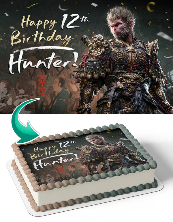 Adorno para tarta con imagen comestible de Wukong, mito negro, hoja de decoración personalizada para cumpleaños, transferencia de glaseado para fiestas personalizadas, fondant