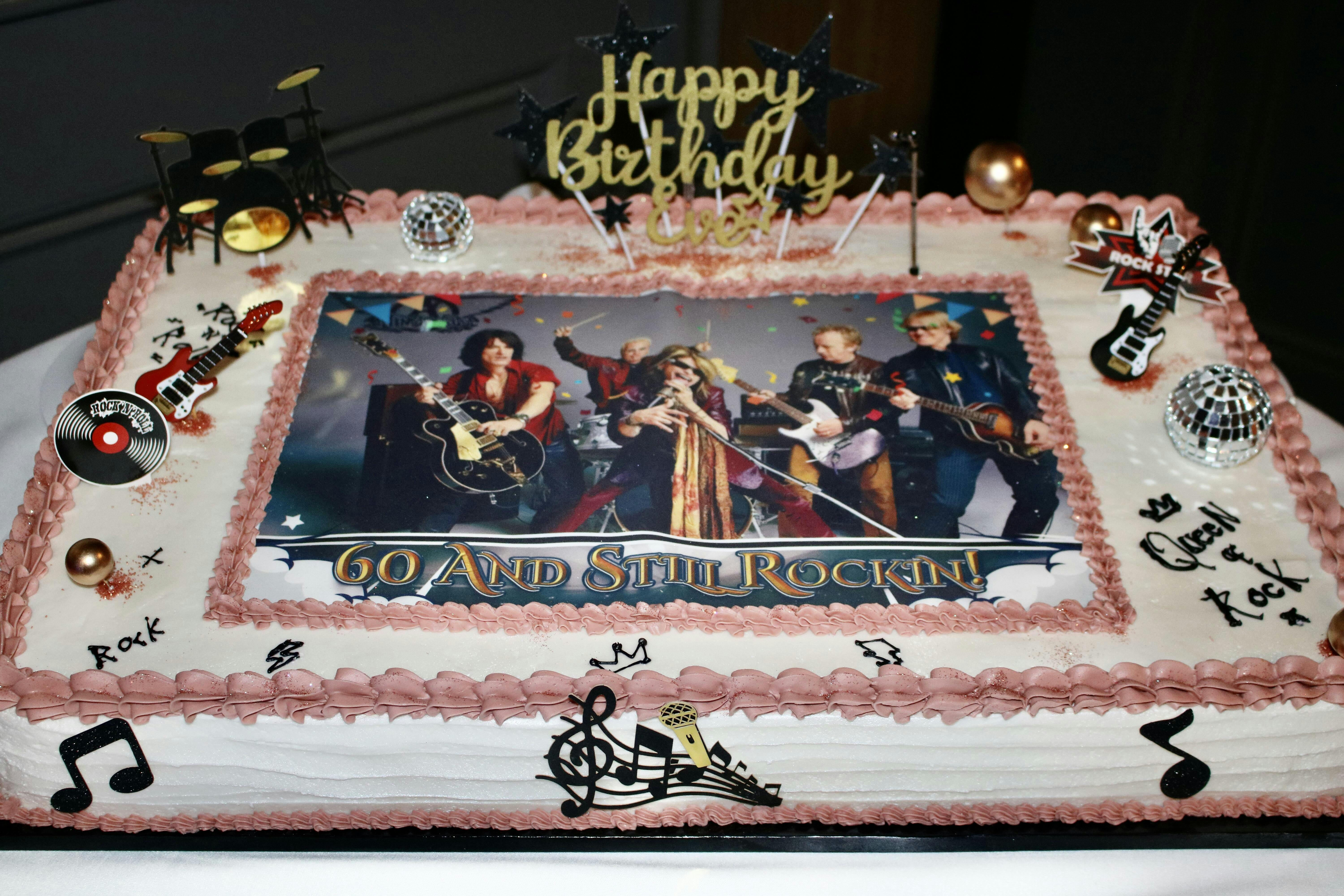 Adorno para tarta con imagen comestible de Aerosmith, hoja de decoración personalizada para cumpleaños, transferencia de glaseado para fiestas personalizada, fondant