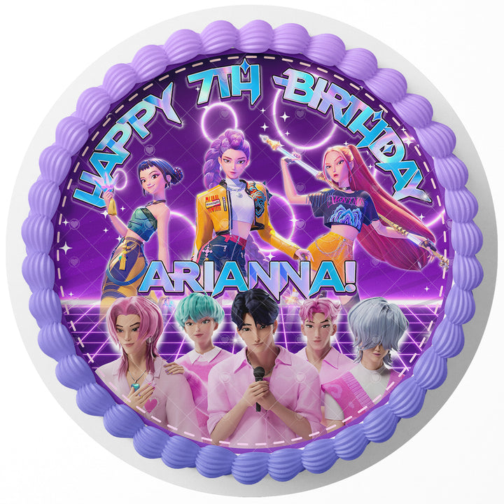 K Pop Demon Hunters PRP Edible Image Cake Topper Personalized Birthday Sheet Decoration Custom Party Frosting Transfer Fondant Round Circle