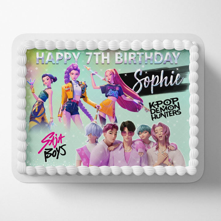 K Pop Demon Hunters Saja Boys Edible Image Cake Topper Personalized Birthday Sheet Decoration Custom Party Frosting Transfer Fondant